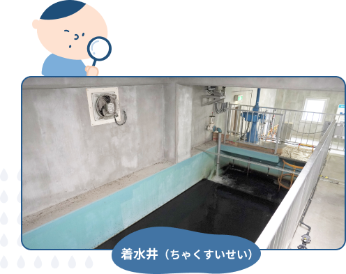 濃縮槽のきれいな上澄みの水をためて、着水井へまたもどしてきれいにします。