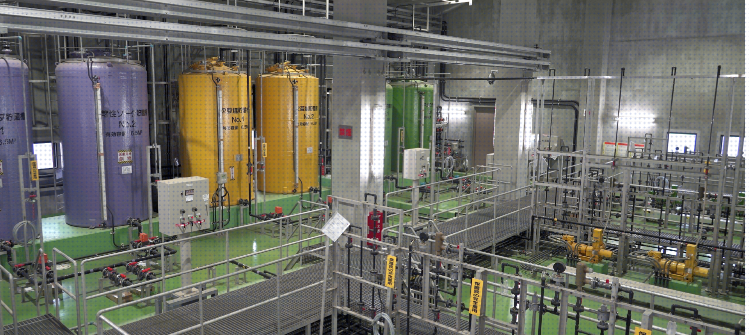 - 苛性ソーダ:原水のpH(ペーハー)を調整します。