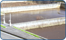 後続の浄水処理が、より効果的に行なえるように粗い砂やゴミを取り除く池。
