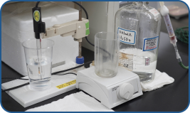 原水水質の把握、浄水処理工程の適正な運用を目的とし、時々刻々と変化する原水水質に対応するべく、毎日水質検査に必要な検査設備・試薬が整備されている。